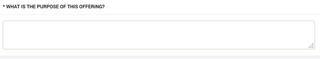 What is the purpose of this offering? - requests a short statement about the general purpose requiring the company to be making this campaign (ie: opening a new store, building a new facility, working capital to scale up a sales department, etc)